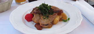 Het eten kwam verdacht snel na onze bestelling, echt binnen vijf minuten stonden onze borden voor onze neuzen. Hmmmmmm.... Tsja, toen we aan het voedsel begonnen merkte we al snel dat dit van kwaliteit "buffetvorm" was. Het eten ligt daar waarschijnlijk gewoon klaar in warmhoudbakken. Het eten valt jammer genoeg tegen, en dit was niet echt een goedkoop tentje. Toen aan mij gevraagd werd of alles naar wens was gaf ik uiteraard aan dat mijn verwachtingen een stuk hoger lagen dan hetgeen wat was opgediend. De reactie van het personeel gaf mij het gevoel dat hij deze reactie vaker krijgt. Mocht je naar LJubljana gaan, kijk goed naar bovenstaande foto als je op zoek gaat naar een eet-tentje, en sla deze over ;-).